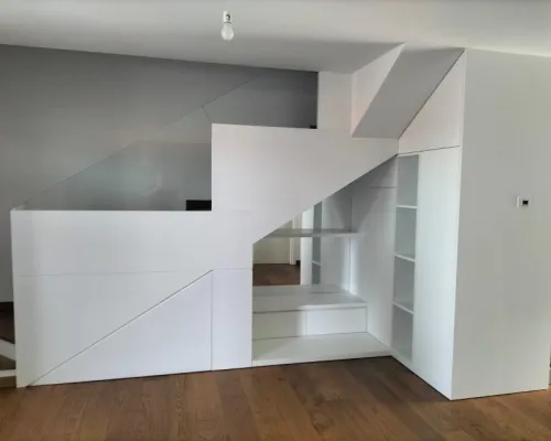Grazie alla cognizione del disegno, alla capacità di adattamento, alla precisione assoluta e alla conoscenza dei materiali, realizziamo mobili di qualsiasi forma e materiale.